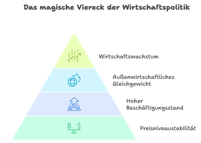 Die Bezeichnung "magisch" deutet darauf hin, dass diese Ziele oft in einem Spannungsverhältnis zueinander stehen. Eine Politik, die etwa stark auf Wirtschaftswachstum setzt, kann unter Umständen die Preisstabilität gefährden.